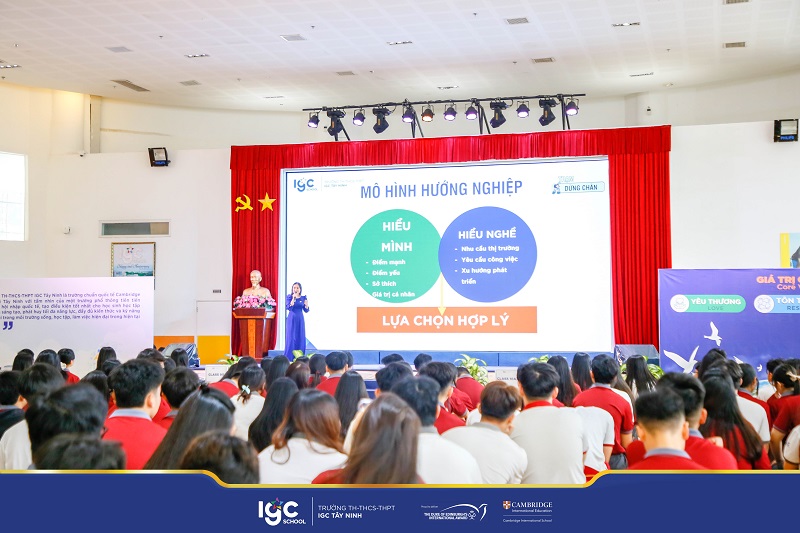 Công tác hướng nghiệp là một mảnh ghép quan trọng trong bức tranh tổng thể về tư vấn học đường và tâm lý, được IGC Tây Ninh triển khai bài bản, cá nhân hóa và bắt đầu từ rất sớm. Nhà trường áp dụng "Sổ vấn hướng nghiệp" và các bài trắc nghiệm khám phá bản thân, hỗ trợ tư vấn 1:1 chuyên sâu để giúp học sinh chọn lộ trình học tập tối ưu (như Cambridge, IELTS, hay chuẩn Bộ GD&ĐT), hướng đến mục tiêu vào đại học hoặc du học. Song song đó, các hội thảo kết nối với chuyên gia và doanh nghiệp hàng đầu còn cung cấp cái nhìn thực tế, giúp các em có định hướng rõ ràng về thị trường lao động và nghề nghiệp tương lai.