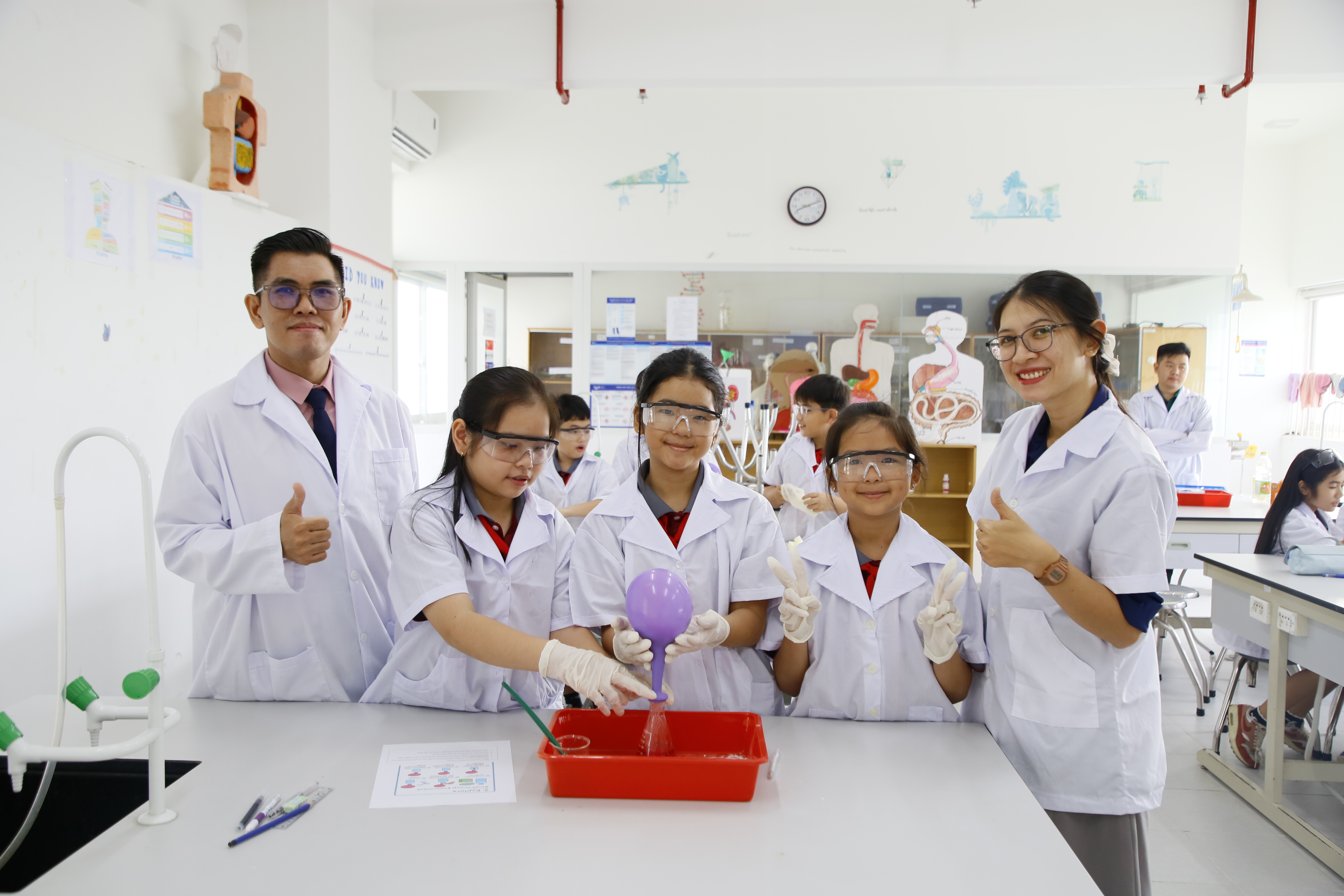 Các phòng học, phòng thí nghiệm, phòng chức năng được bố trí khoa học, đảm bảo tối ưu mọi không gian, phục vụ cho việc học tập - nghiên cứu và sinh hoạt của học sinh. Đặc biệt, trường có Maker-Lab - phòng học chuyên biệt cho chương trình STEAM, đây là không gian sáng chế - thực hành được các em học sinh vô cùng yêu thích.